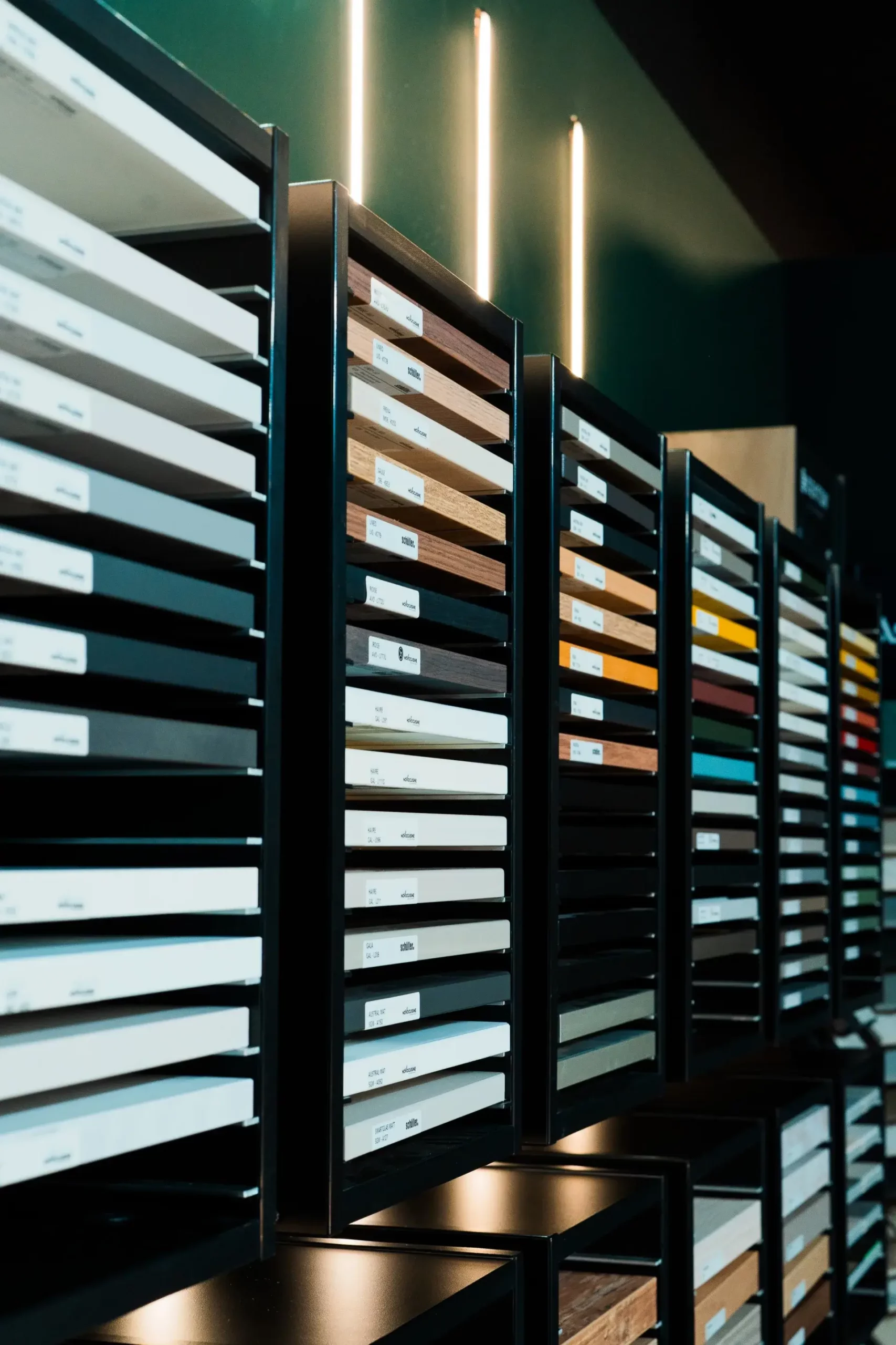 Dans le NOVOTECH, les façades de cuisine sont présentées dans une gamme variée, allant du mat classique au laqué mat, avec des finitions anti-trace pour une facilité d’entretien. Les clients peuvent choisir parmi une vingtaine de coloris standards ou opter pour des teintes sur mesure, afin de créer un rendu unique. Pour vos caissons interieur ou exterieur de meuble, une large gamme de choix est proposée également, fini les intérieurs de caisson blanc ! Cette diversité permet de s’adapter à tous les styles, qu’il s’agisse d’un design moderne, minimaliste ou plus chaleureux.